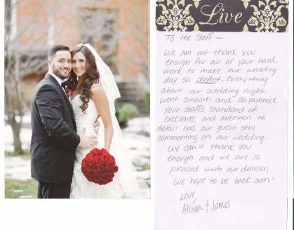 “We had our wedding here in September and our guest and Family are still calling raving about it! The food and service are absolutely top notch.